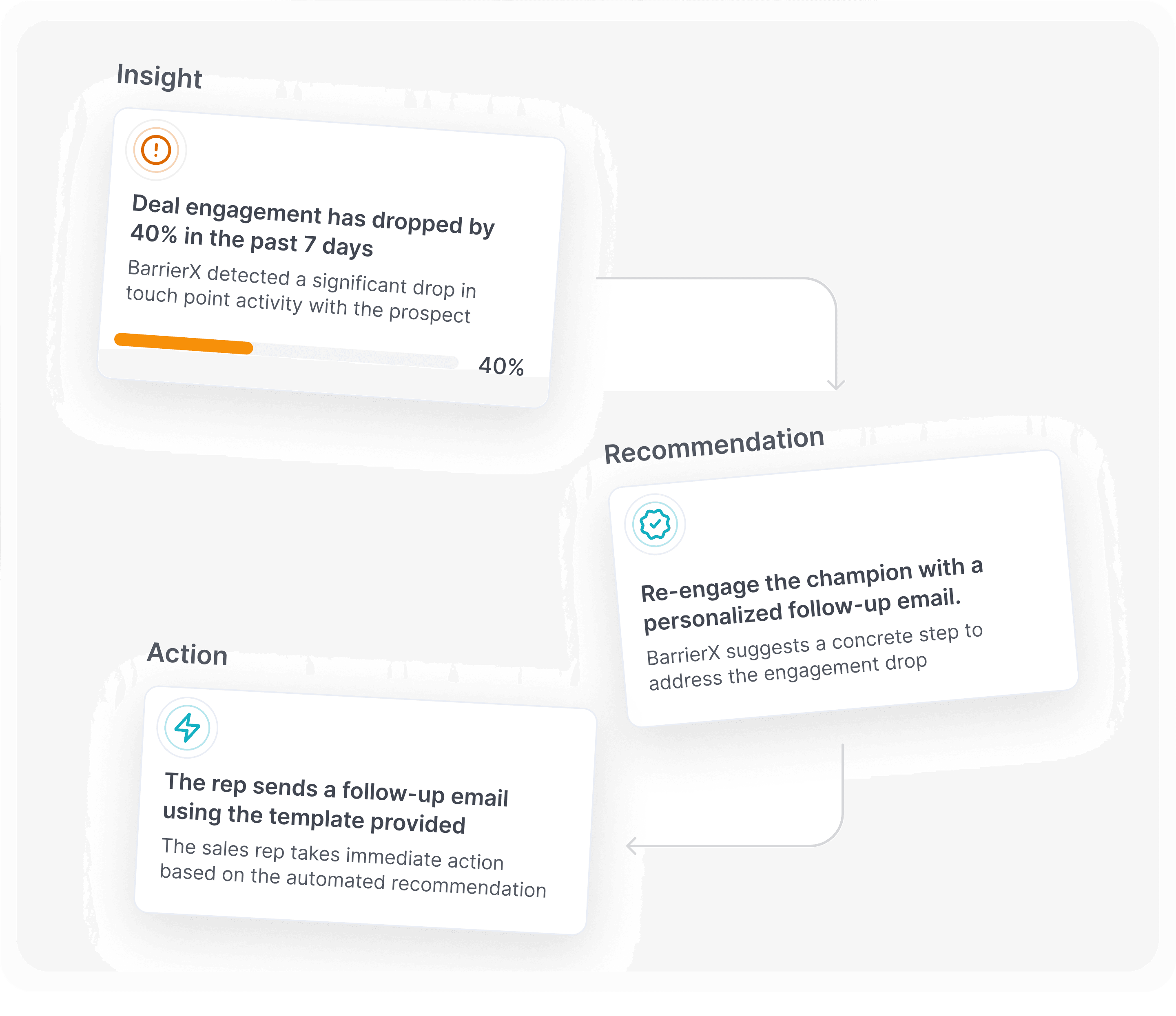 For every risk, BarrierX prescribes the next best one-click action — and lets you trigger it, so deals move now.