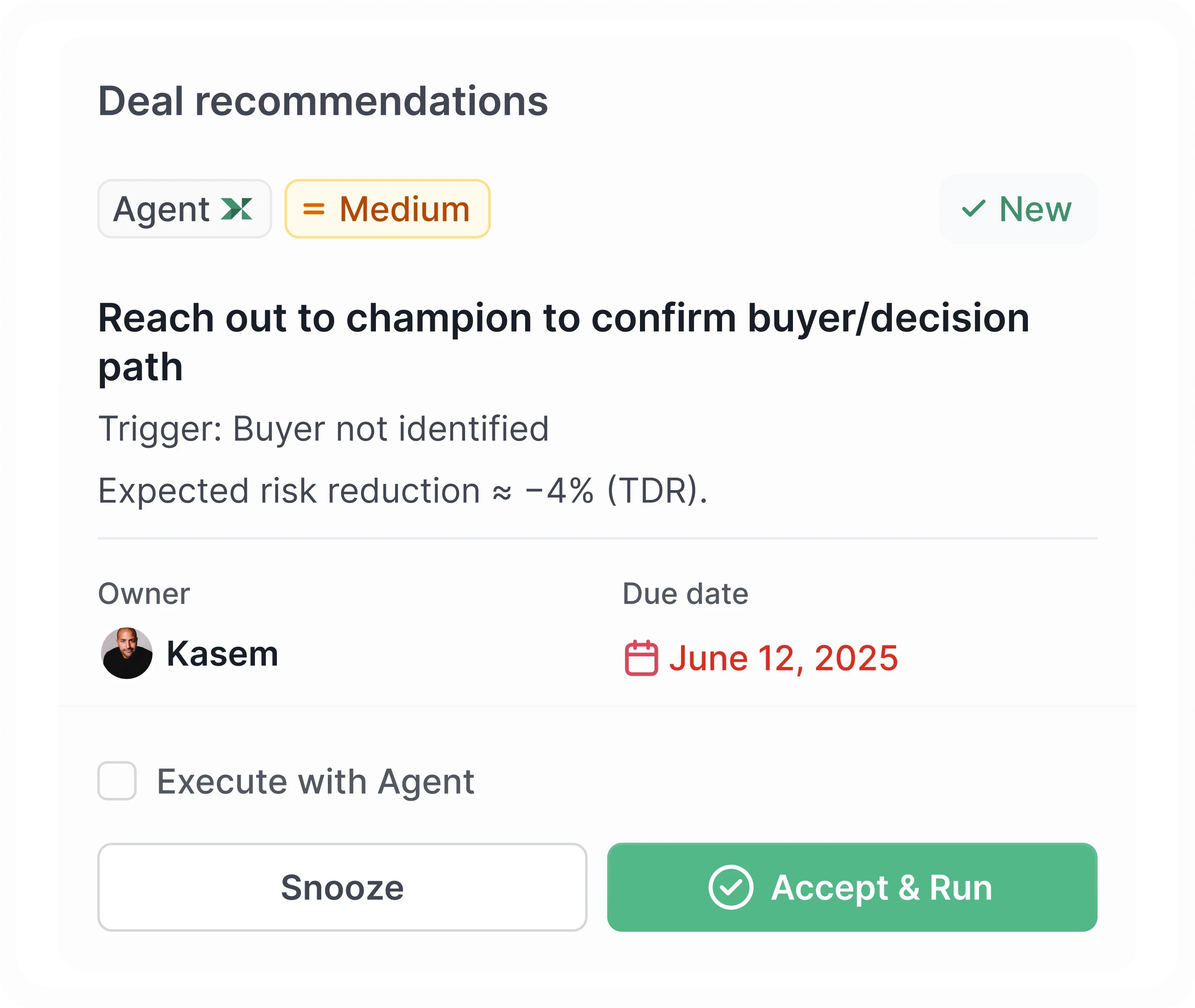 Our Revenue Risk Engine resolves duplicates, fuses 500+ signals, and explains each risk in plain language — right on the deal.